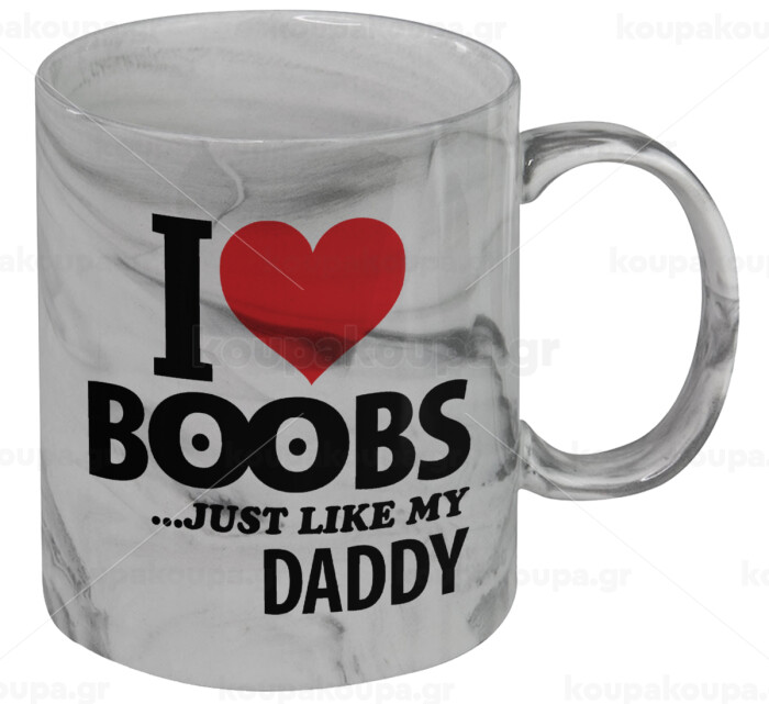 I Love boobs ...just like my daddy, Mug ceramic marble style, 330ml