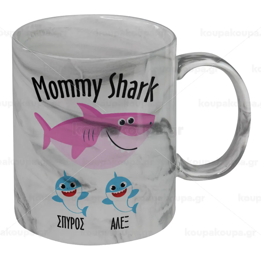Mommy Shark (με ονόματα παιδικά), Mug ceramic marble style, 330ml