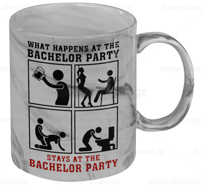 What happens at the bachelor party, stays at the bachelor party!, Mug ceramic marble style, 330ml