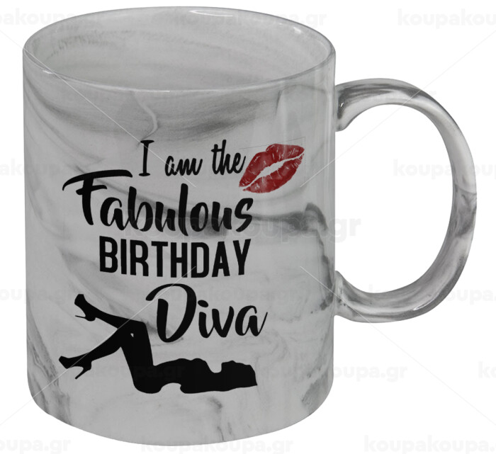 I am the fabulous Birthday Diva, Mug ceramic marble style, 330ml