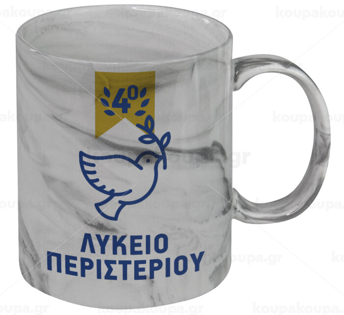Έμβλημα Σχολικό μπλε/χρυσό περιστέρι, Mug ceramic marble style, 330ml