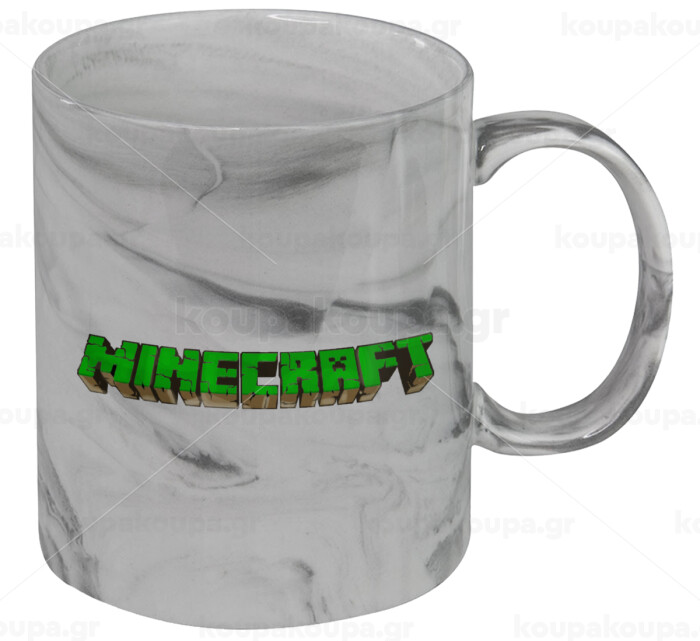 Minecraft logo green, Mug ceramic marble style, 330ml