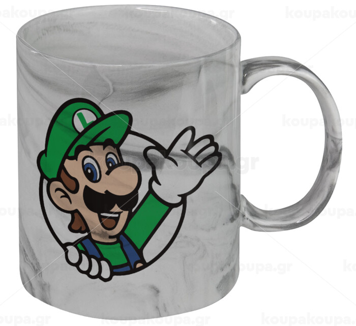 Super mario Luigi win, Mug ceramic marble style, 330ml