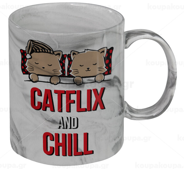 Catflix and Chill, Mug ceramic marble style, 330ml