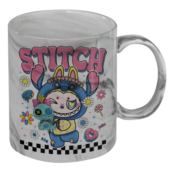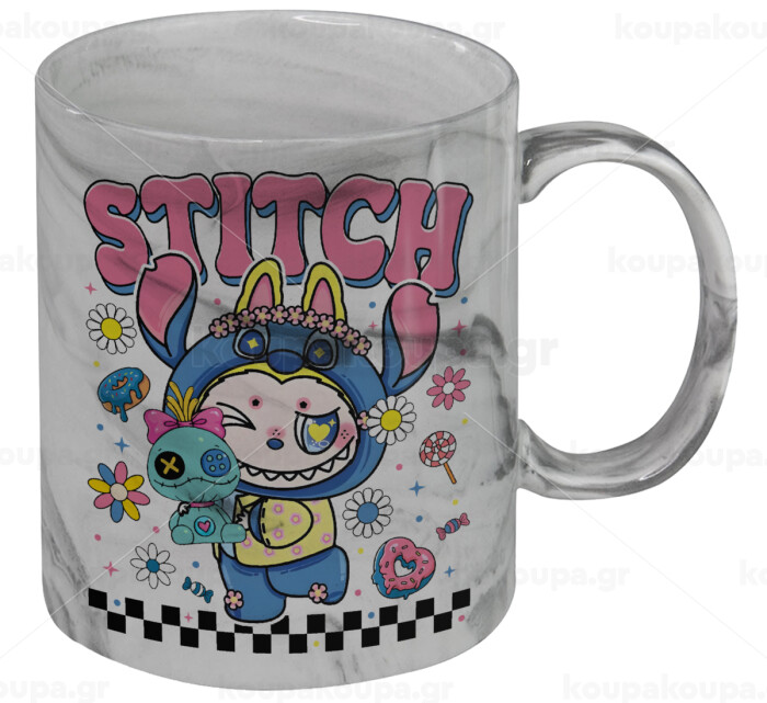 Labubu Stitch, Mug ceramic marble style, 330ml