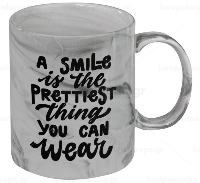 A smile is the prettiest thing you can wear, Mug ceramic marble style, 330ml