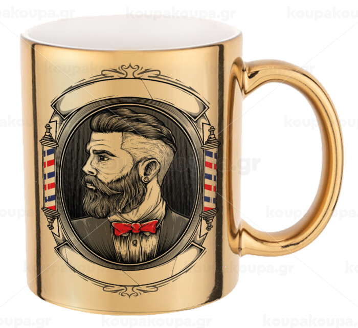 Barber shop, Mug ceramic, gold mirror, 330ml