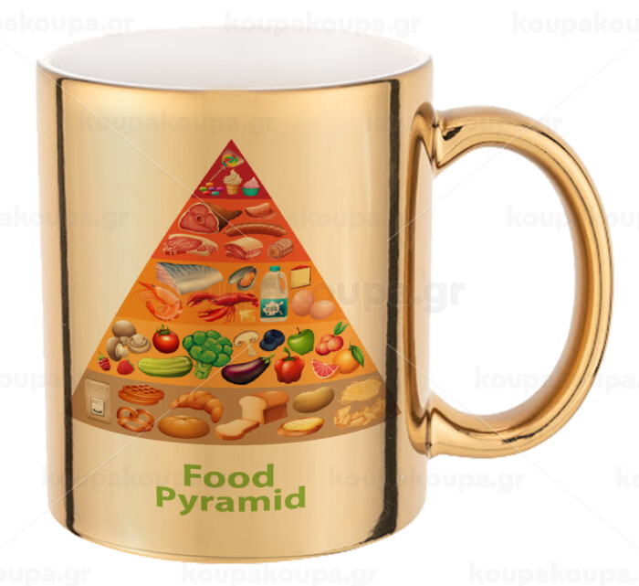 Food pyramid chart, Mug ceramic, gold mirror, 330ml
