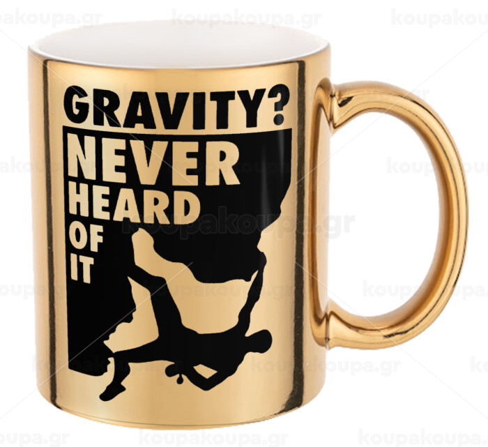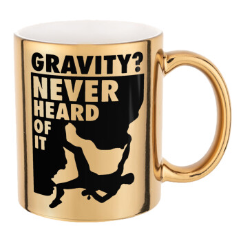 Gravity? Never heard of that!, Mug ceramic, gold mirror, 330ml