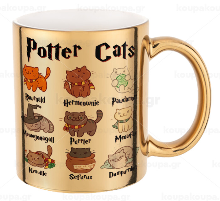 Potter Cats, Mug ceramic, gold mirror, 330ml