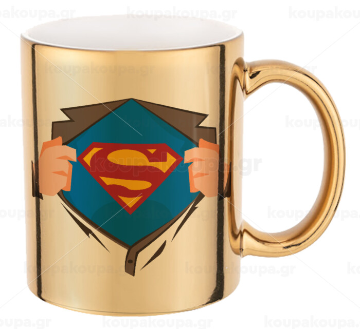 Superman hands, Mug ceramic, gold mirror, 330ml