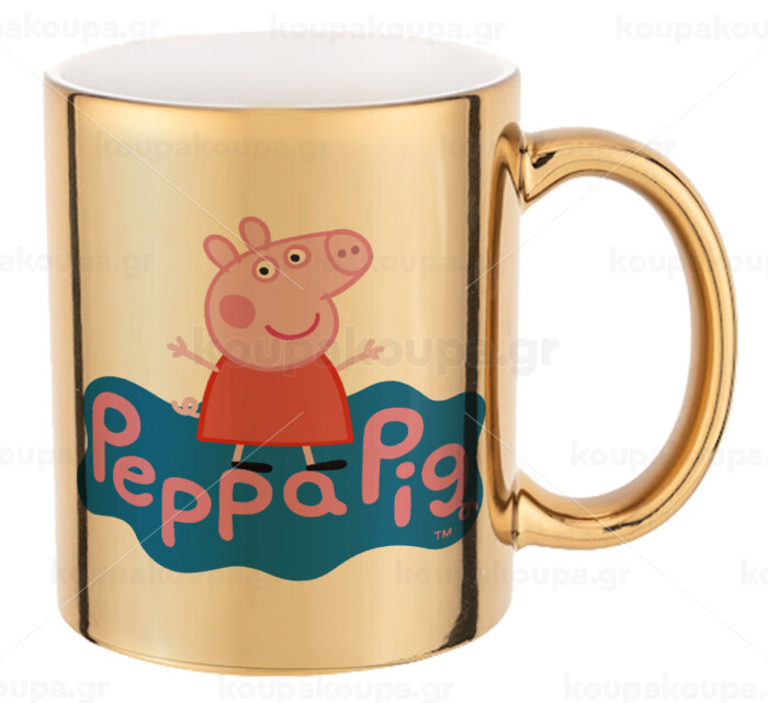 Πέππα το γουρουνάκι μπλε με όνομα, Mug ceramic, gold mirror, 330ml