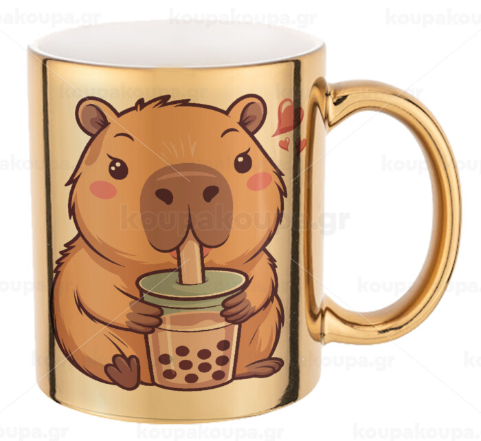 Capybara Bubble Tea, Mug ceramic, gold mirror, 330ml
