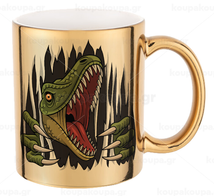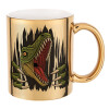 Dinosaur scratch, Mug ceramic, gold mirror, 330ml