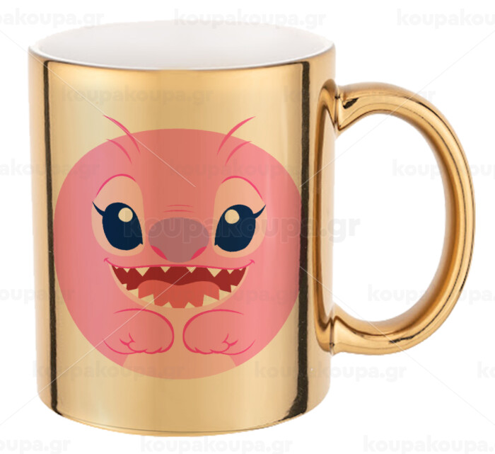 Lilo & Stitch Angel pink, Mug ceramic, gold mirror, 330ml