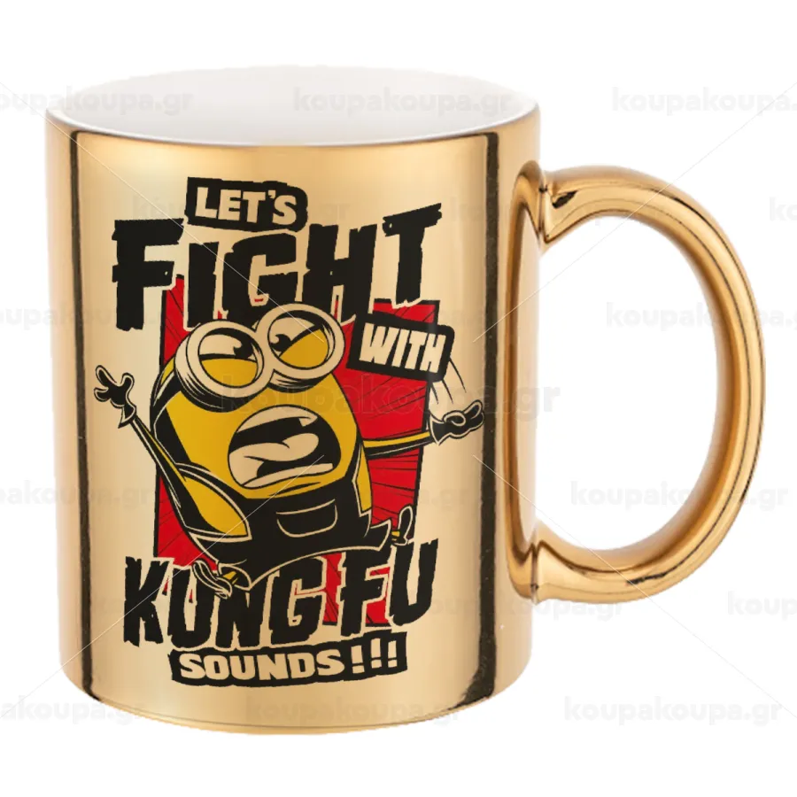 Minions Let's fight with kung fu sounds, Mug ceramic, gold mirror, 330ml