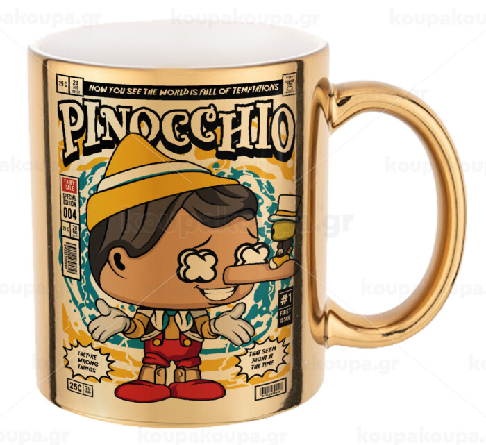 Pinocchio, Mug ceramic, gold mirror, 330ml
