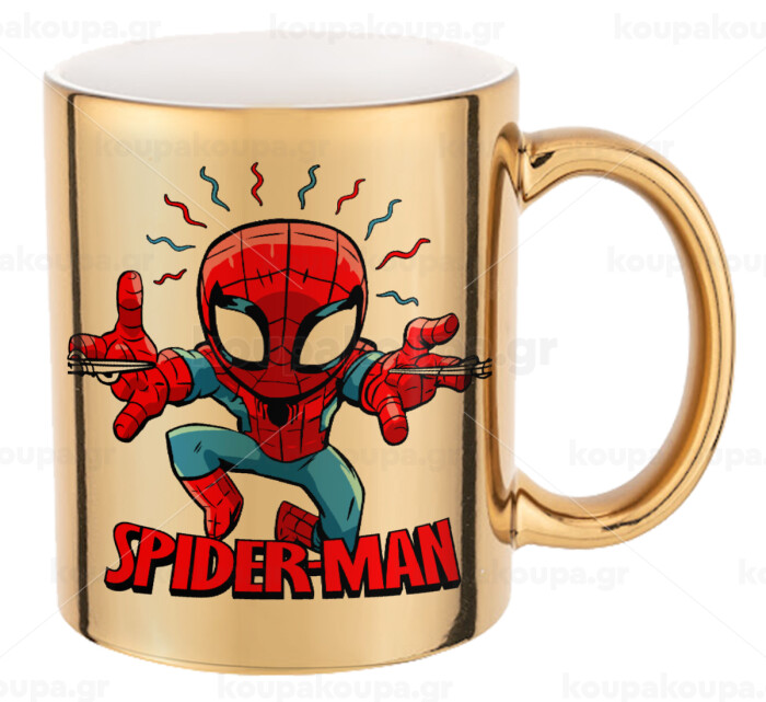 Spiderman flying, Mug ceramic, gold mirror, 330ml
