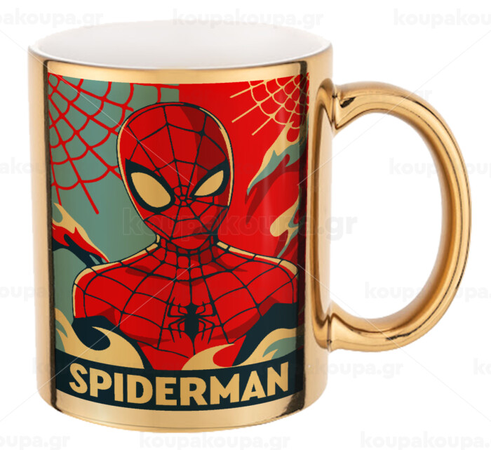 Spiderman kid, Mug ceramic, gold mirror, 330ml