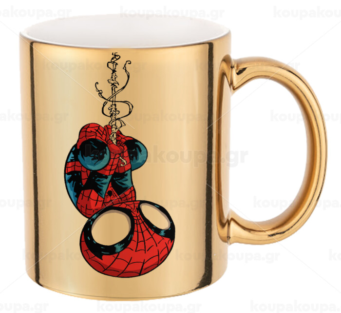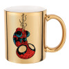 Spiderman upside down, Mug ceramic, gold mirror, 330ml