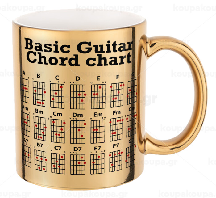 Guitar tabs, Mug ceramic, gold mirror, 330ml