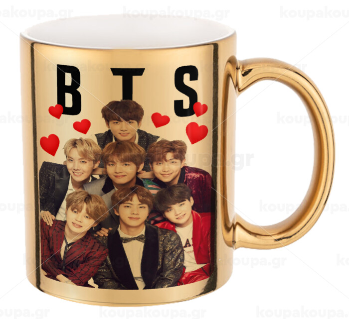 BTS hearts, Mug ceramic, gold mirror, 330ml