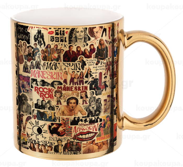 Maneskin stickers, Mug ceramic, gold mirror, 330ml