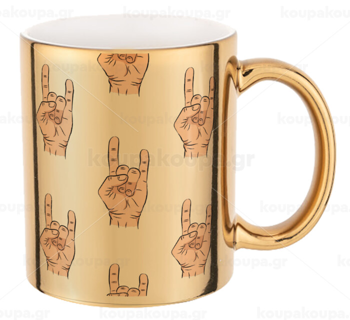 Rock hands, Mug ceramic, gold mirror, 330ml