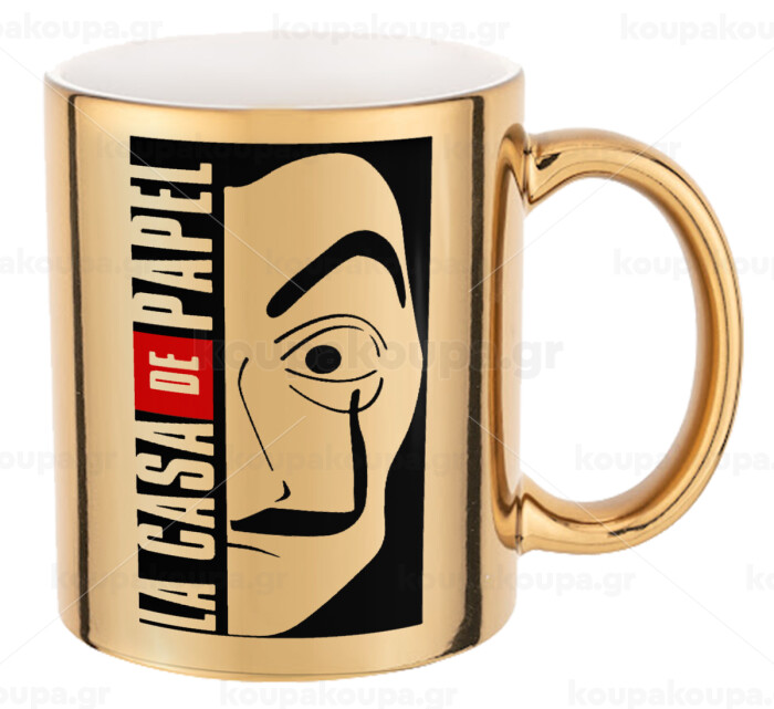 La casa de papel vertical, Mug ceramic, gold mirror, 330ml