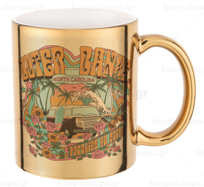 Outerbanks paradise on earth, Mug ceramic, gold mirror, 330ml