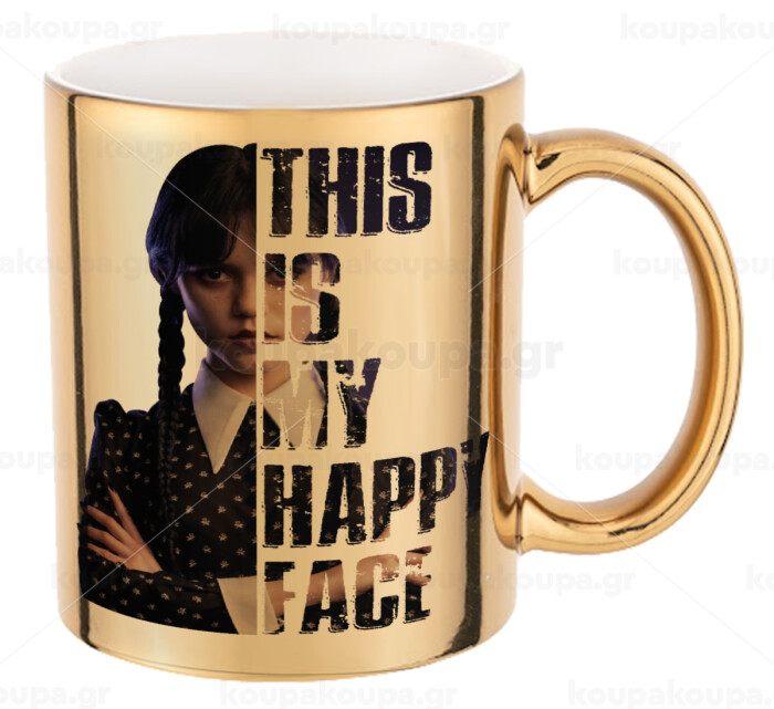 Wednesday, This is my happy face, Mug ceramic, gold mirror, 330ml