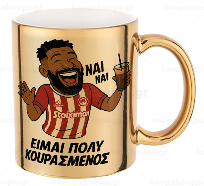 Ροντινέι, "ΠΟΛΥ ΚΟΥΡΑΣΜΕΝΟΣ", Mug ceramic, gold mirror, 330ml