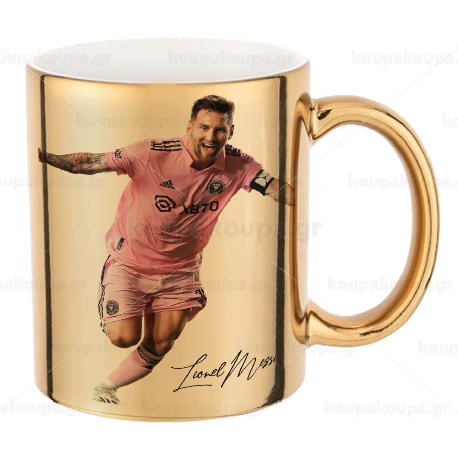 Lionel Messi inter miami jersey, Mug ceramic, gold mirror, 330ml