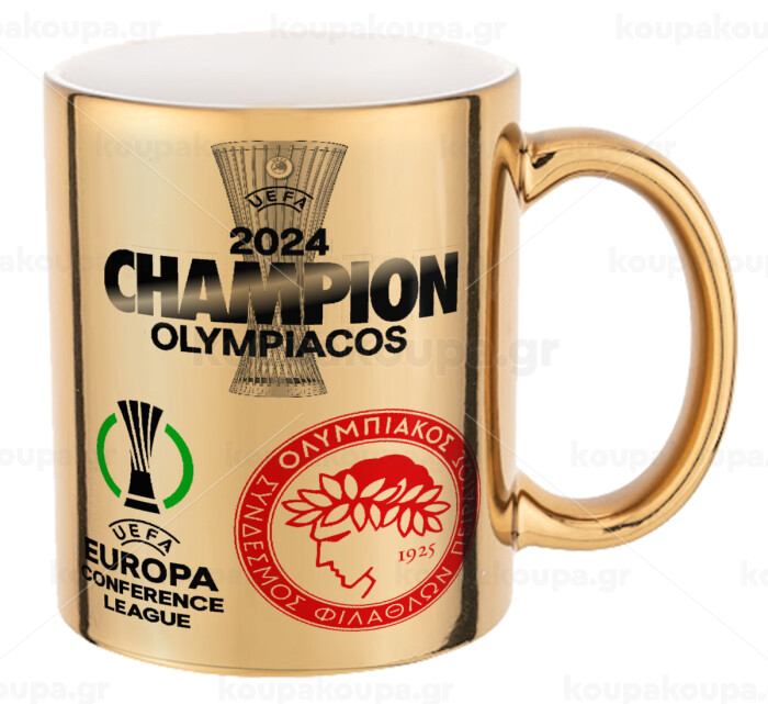 Olympiacos UEFA Europa Conference League Champion 2024, Mug ceramic, gold mirror, 330ml