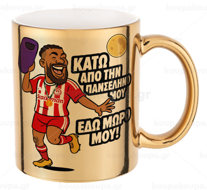 Ροντινέι, "ΚΑΤΩ ΑΠΟ ΤΗΝ ΠΑΝΣΕΛΗΝΟ ΜΟΥ!", Mug ceramic, gold mirror, 330ml