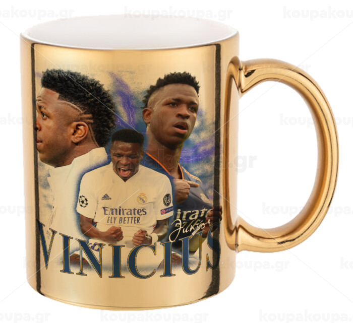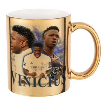 Vinicius Junior, Mug ceramic, gold mirror, 330ml