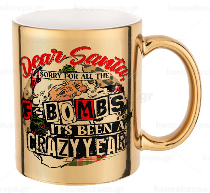 Dear Santa, sorry for all the F-bombs, Mug ceramic, gold mirror, 330ml