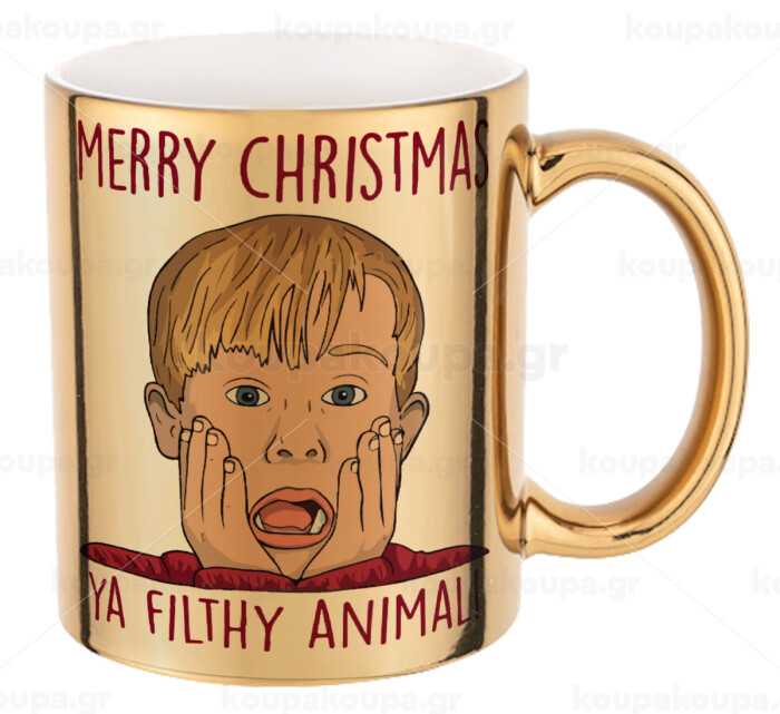 home alone, Merry Christmas ya filthy animal, Mug ceramic, gold mirror, 330ml