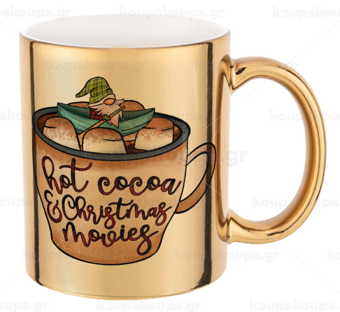 Hot Cocoa And Christmas Movies, Mug ceramic, gold mirror, 330ml