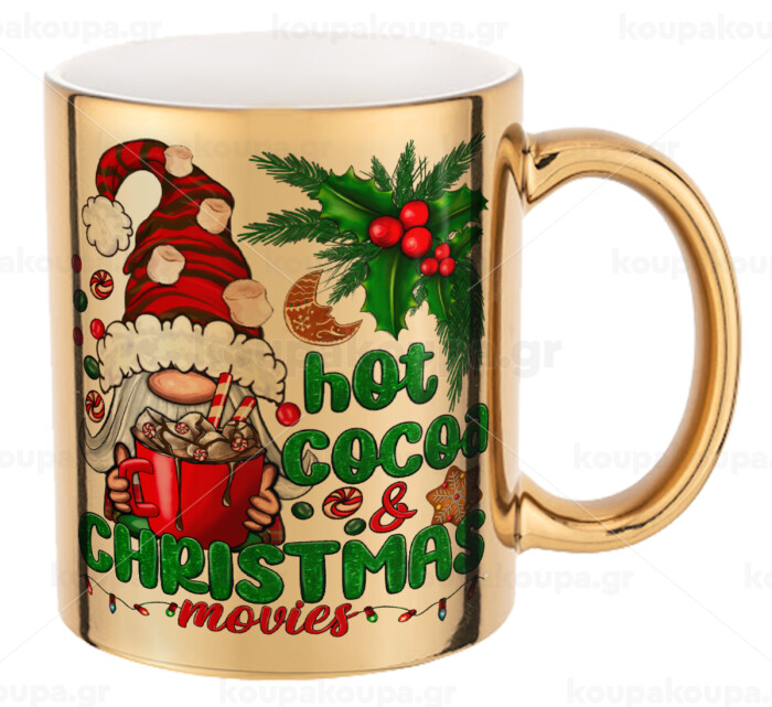 Hot cocoa and Christmas movies, Mug ceramic, gold mirror, 330ml