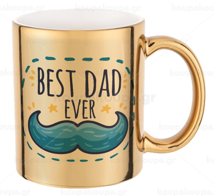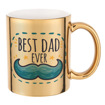 Best dad ever μπλε μουστάκι, Mug ceramic, gold mirror, 330ml