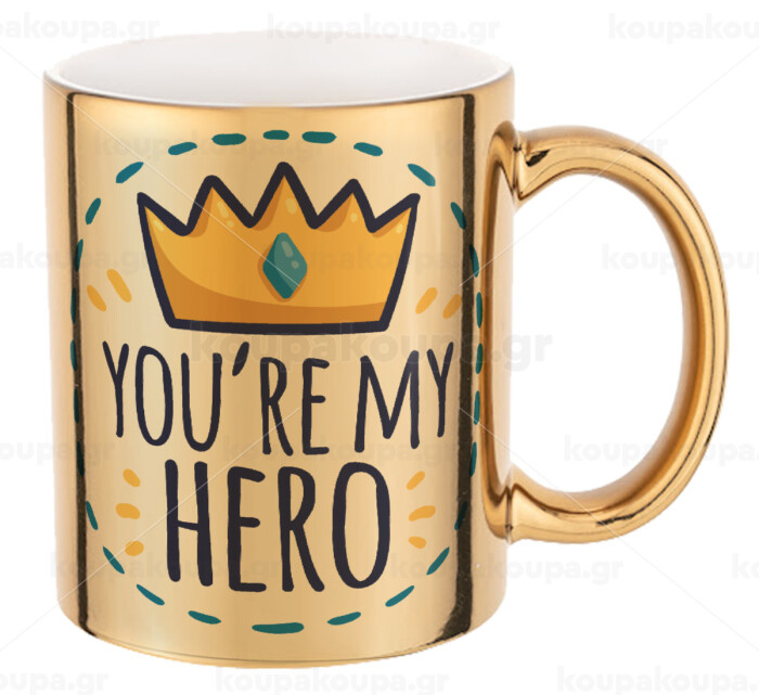 Dad, you are my hero!, Mug ceramic, gold mirror, 330ml