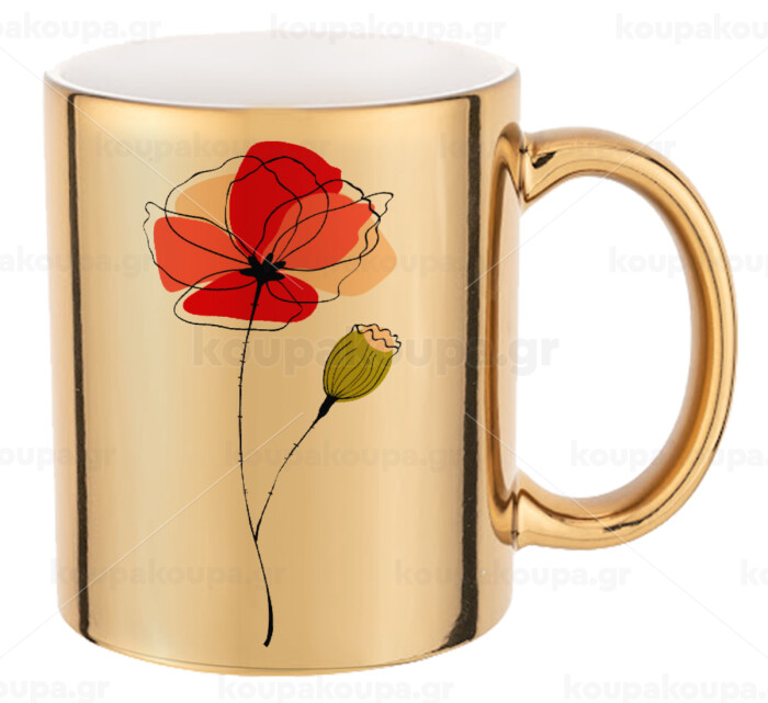 Red poppy flowers papaver, Mug ceramic, gold mirror, 330ml