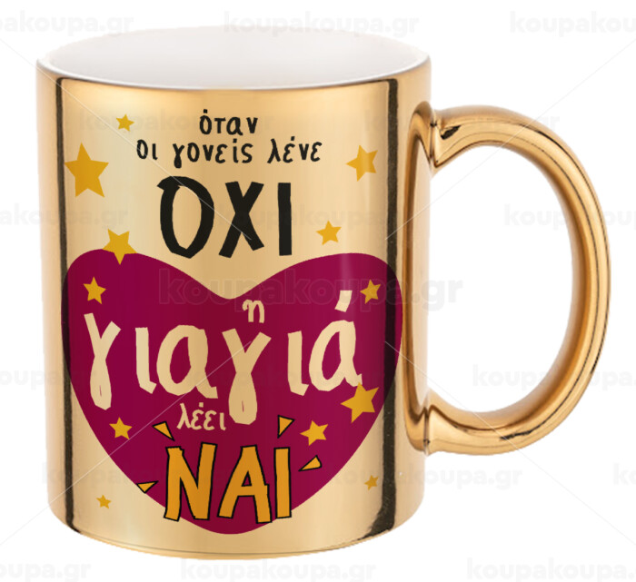 Όταν οι γονείς λένε ΟΧΙ, η γιαγιά λέει ΝΑΙ, Mug ceramic, gold mirror, 330ml