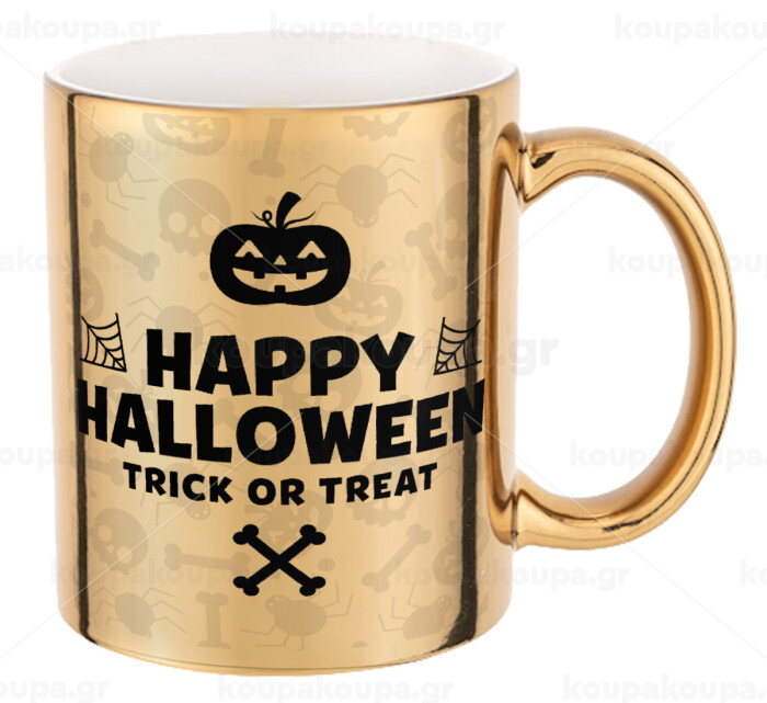 Happy Halloween pumpkin, Mug ceramic, gold mirror, 330ml