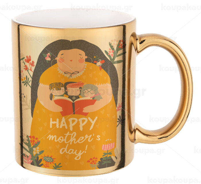 Cute mother reading book, happy mothers day, Mug ceramic, gold mirror, 330ml