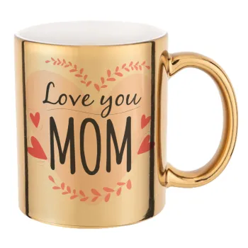 Mother's day I Love you Mom heart, Mug ceramic, gold mirror, 330ml