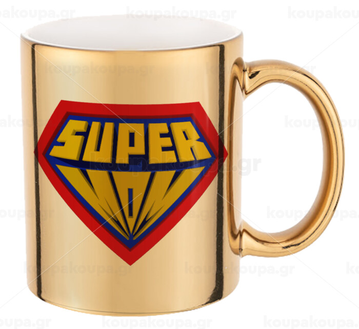 Super Mom 3D, Mug ceramic, gold mirror, 330ml
