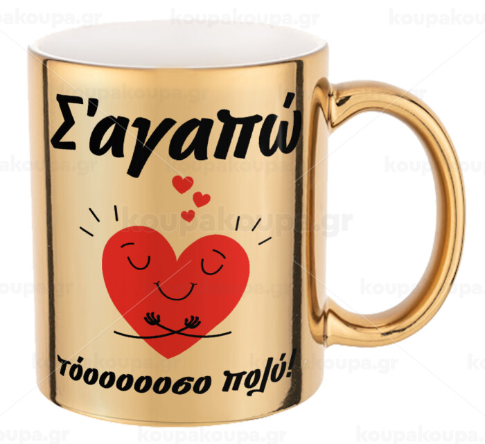 Σ΄αγαπώ τόοοοσο πολύ καρδιά, Mug ceramic, gold mirror, 330ml
