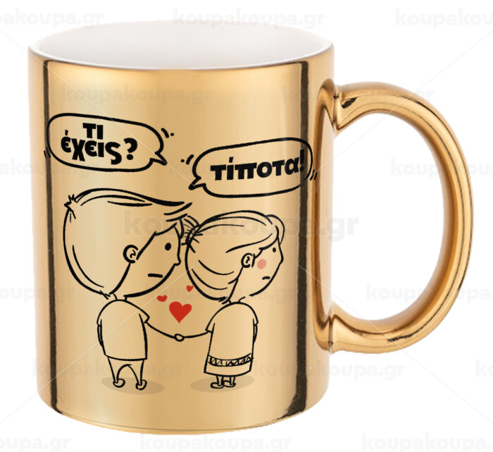 Τι έχεις? Τίποτα!, Mug ceramic, gold mirror, 330ml